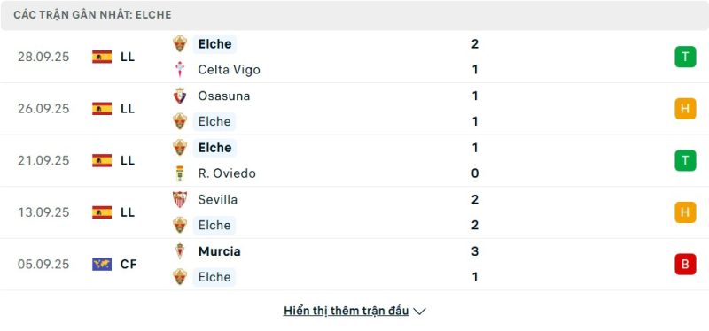 - Phong độ của Elche