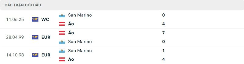 Thành tích đối đầu của Áo vs San Marino