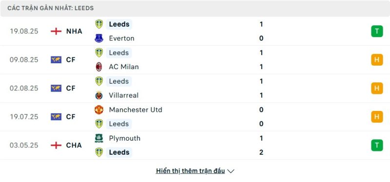 • Phong độ của Leeds United