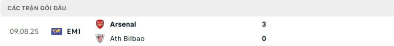 Thành tích đối đầu của Athletic Bilbao vs Arsenal