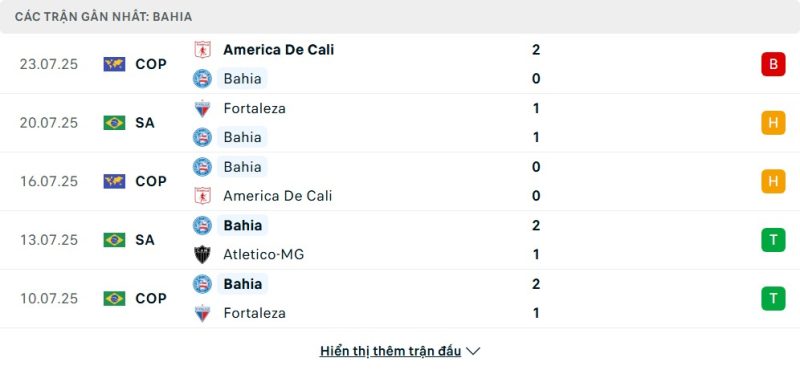5 trận gần nhất của Bahia: L-D-D-W-W