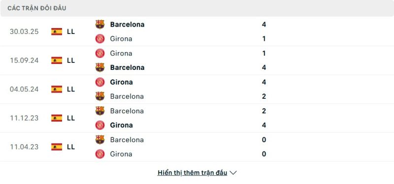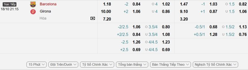 Bảng Tỷ lệ kèo bóng đá Barcelona vs Girona