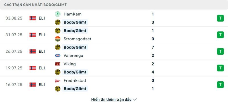 • Phong độ của Bodø/Glimt