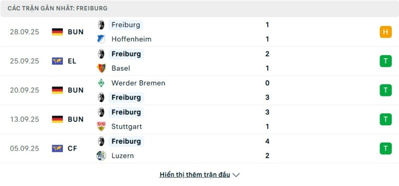 - Phong độ của SC Freiburg