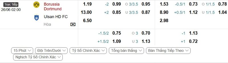 • Kèo tỷ số bóng đá hiệp 1: Borussia Dortmund 2-0 Ulsan HD