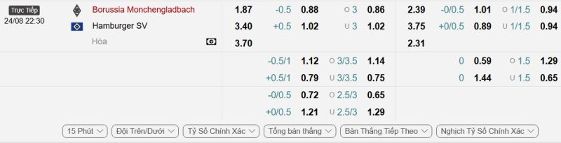 - Kèo tỷ số bóng đá hiệp 1: Borussia Mönchengladbach 2-0 Hamburger SV