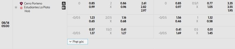 Bảng Tỷ lệ kèo bóng đá Cerro Porteño vs Estudiantes de La Plata