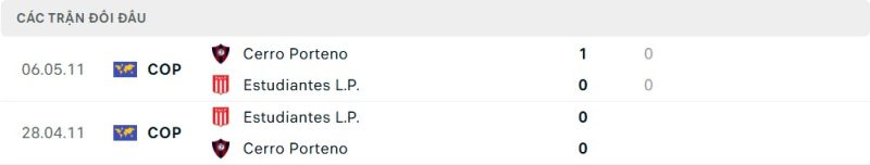 Thành tích đối đầu của Cerro Porteño vs Estudiantes de La Plata