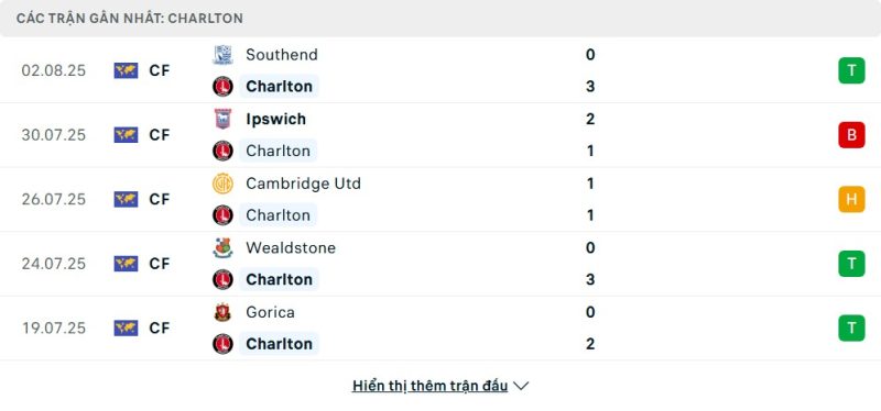 Charlton Athletic vừa trải qua chuỗi trận giao hữu hè khá tích cực với những chiến thắng ấn tượng như 3-0 trước Southend, 3-0 trước Wealdstone và 3-2 trước Dartford. Tuy nhiên, họ cũng để thua Ipswich 1-2 và thất bại 0-3 trước Whyteleafe, cho thấy sự thiếu ổn định ở hàng thủ. Trong giai đoạn cuối mùa trước ở League One, Charlton duy trì mạch bất bại với nhiều chiến thắng quan trọng, nhưng bước vào Championship, họ sẽ phải đối mặt với những đối thủ có đẳng cấp cao hơn nhiều.