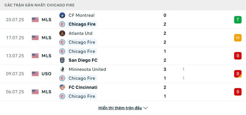 - Phong độ của Chicago Fire