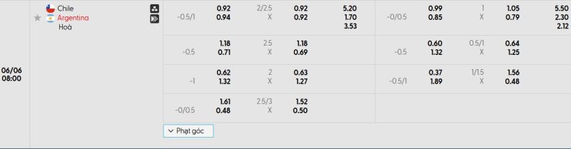Bảng Tỷ lệ kèo bóng đá Chile vs Argentina