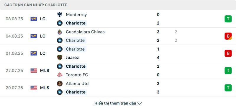 - Phong độ của Charlotte FC