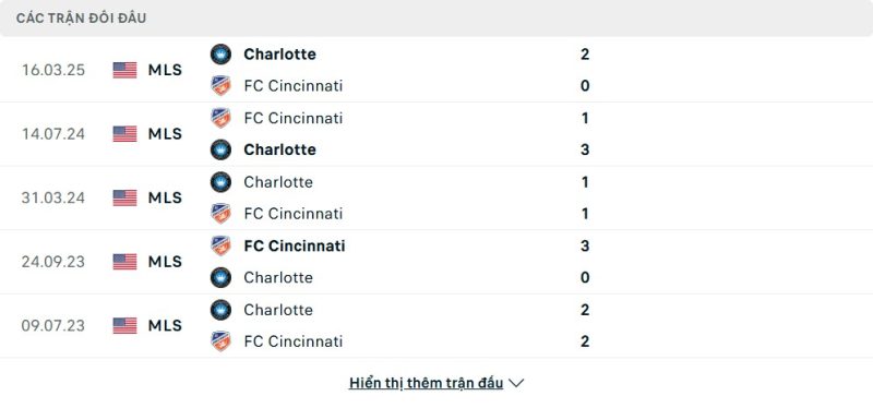 Thành tích đối đầu của FC Cincinnati vs Charlotte FC