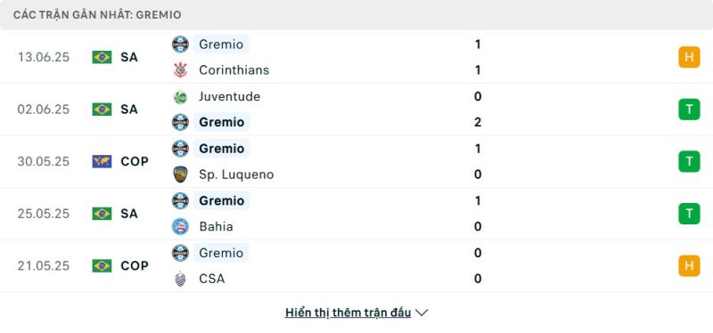 Về phía Grêmio, thầy trò HLV Mano Menezes cũng đang duy trì phong độ tương đối tốt trong thời gian gần đây. Sau thất bại trước São Paulo, đội bóng này đã nhanh chóng lấy lại tinh thần bằng hai chiến thắng liên tiếp trước Bahia và Juventude. Màn trình diễn ổn định của các trụ cột như Martin Braithwaite hay Alysson cho thấy Grêmio có đủ khả năng duy trì áp lực lên nhóm đầu bảng. Dù vậy, trận hòa 1-1 với Corinthians sau đó cũng phần nào phản ánh giới hạn trong khả năng duy trì thế trận áp đảo khi phải thi đấu trên sân khách.