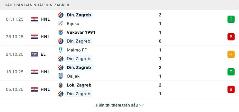 - Phong độ của Dinamo Zagreb