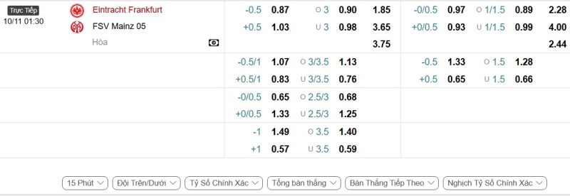 Bảng Tỷ lệ kèo bóng đá Eintracht Frankfurt vs Mainz 05