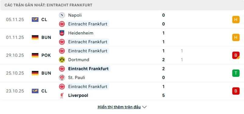 Phong độ của Eintracht Frankfurt