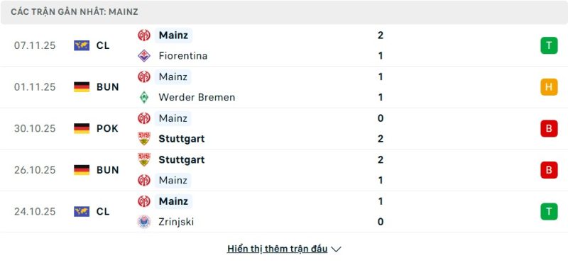 Phong độ của Mainz 05