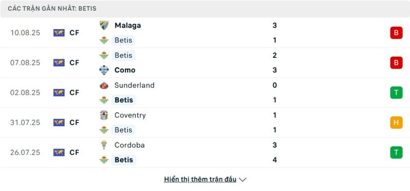 Bên kia chiến tuyến, Real Betis lại có sự chuẩn bị không quá thuyết phục cho mùa giải mới. Họ thắng Sunderland và Córdoba, nhưng cũng trải qua nhiều kết quả không mong muốn như thua Málaga, Como và thất bại trước Chelsea ở đấu trường châu Âu. Đội bóng này cho thấy sự bất ổn ở hàng thủ, thường để lộ khoảng trống cho đối phương khai thác. Dù sở hữu dàn cầu thủ chất lượng và kinh nghiệm, họ vẫn chưa tìm ra công thức ổn định trong giai đoạn chuẩn bị. Điều này có thể ảnh hưởng đến sự tự tin khi ra sân.