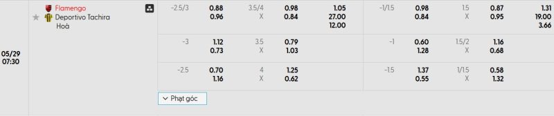 Bảng Tỷ lệ kèo bóng đá Flamengo vs Deportivo Táchira