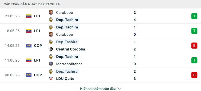 Phong độ của Deportivo Táchira