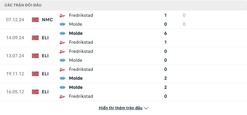 Bảng Tỷ lệ kèo bóng đá Fredrikstad vs Molde