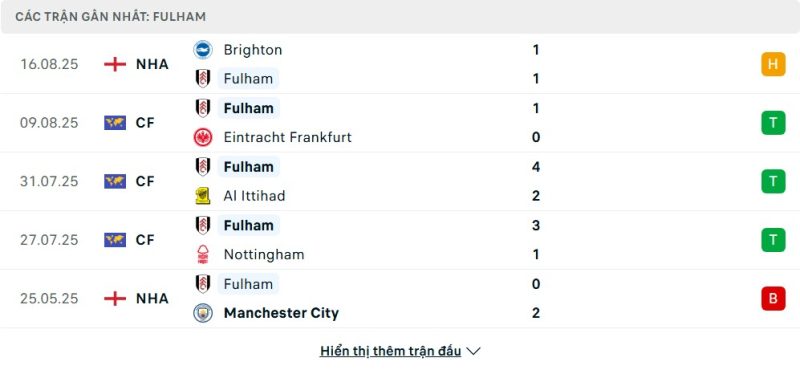 Lối chơi của Fulham gần đây được định hình dựa trên sự chắc chắn của hàng phòng ngự và khả năng chuyển đổi trạng thái nhanh. Họ không cầm bóng quá nhiều nhưng luôn biết cách tạo ra nguy hiểm từ những đường phản công sắc bén và các tình huống cố định. Hàng công của Fulham cho thấy hiệu suất ghi bàn đáng nể trong loạt trận giao hữu và việc chọc thủng lưới Brighton ngay trên sân khách cũng là một minh chứng. Sự tự tin và lối chơi tập thể kỷ luật sẽ là vũ khí chính của Fulham trong trận đấu này.