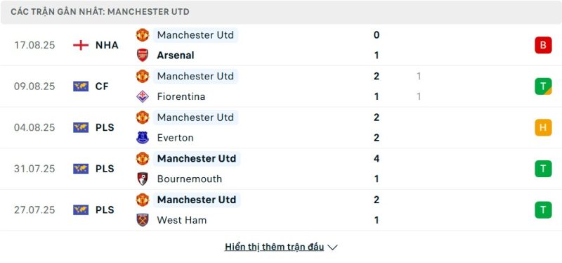 Thống kê phong độ gần đây Fulham vs Manchester United