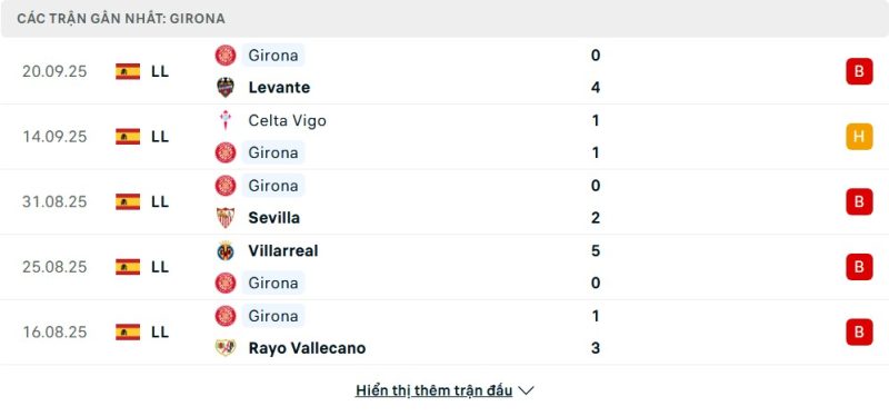 Girona đang trải qua một khởi đầu mùa giải không thể tồi tệ hơn. Sau 5 vòng đấu đầu tiên, đội chủ nhà đang đứng cuối cùng trên bảng xếp hạng La Liga với chỉ vỏn vẹn 1 điểm. Họ vẫn chưa biết đến mùi chiến thắng khi đã phải nhận tới 4 thất bại và chỉ có được 1 trận hòa. Những thất bại nặng nề như trận thua 0-5 trước Villarreal hay 0-4 trước Levante ngay trên sân nhà đã cho thấy sự khủng hoảng sâu sắc của đội bóng này.