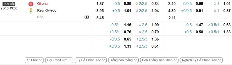 Bảng Tỷ lệ kèo bóng đá Girona vs Real Oviedo