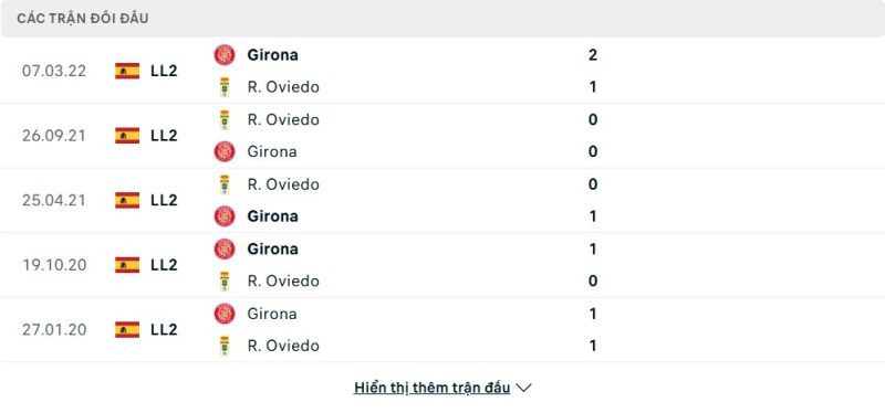 Thành tích đối đầu của Girona vs Real Oviedo