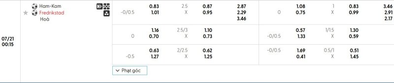 Bảng Tỷ lệ kèo bóng đá HamKam vs Fredrikstad