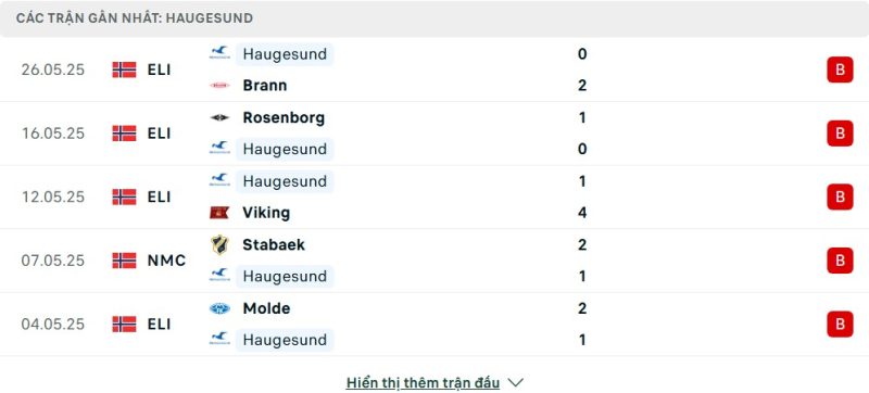 5 trận gần nhất của Haugesund: L-L-L-L-L