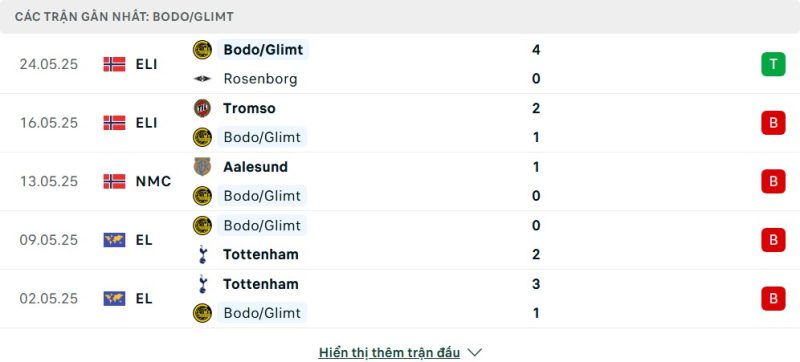 • Phong độ của Bodø/Glimt