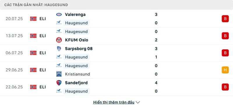 5 trận gần nhất của Haugesund: L-L-L-D-L
