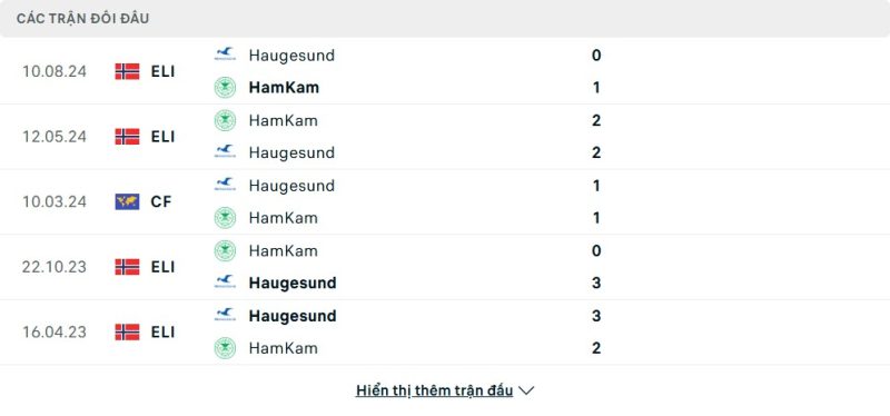 Thành tích đối đầu của Haugesund vs HamKam