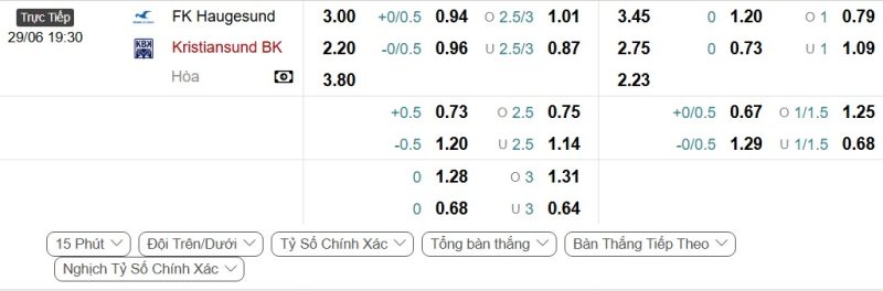 - Kèo tỷ số bóng đá hiệp 1: Haugesund 1-2 Kristiansund
