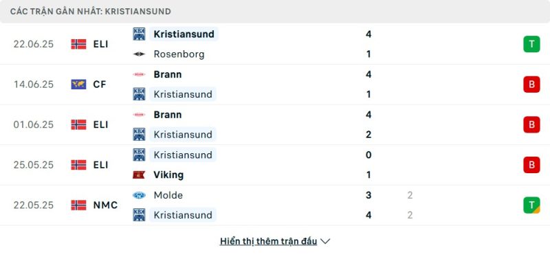- Phong độ của Kristiansund