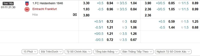 Bảng Tỷ lệ kèo bóng đá 1. FC Heidenheim vs Eintracht Frankfurt