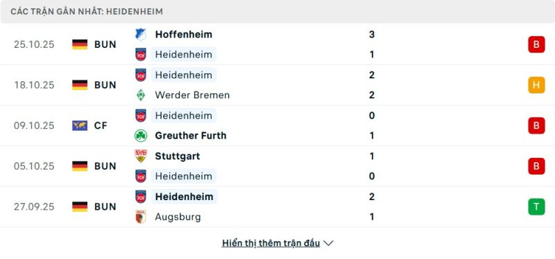 Thống kê phong độ gần đây 1. FC Heidenheim vs Eintracht Frankfurt