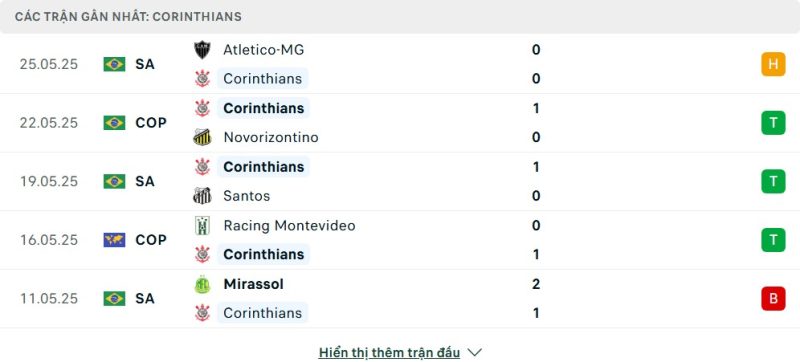 - Phong độ của Corinthians