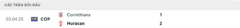 Thành tích đối đầu của Huracán vs Corinthians