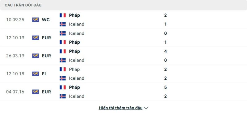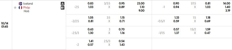 Bảng Tỷ lệ kèo bóng đá Iceland vs Pháp
