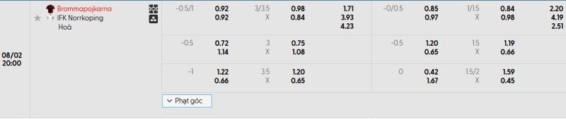 Bảng Tỷ lệ kèo bóng đá IF Brommapojkarna vs IFK Norrköping
