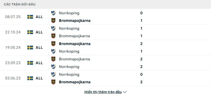 Thành tích đối đầu của IF Brommapojkarna vs IFK Norrköping