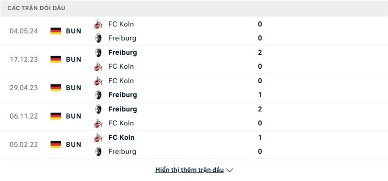 Thành tích đối đầu của Köln vs SC Freiburg