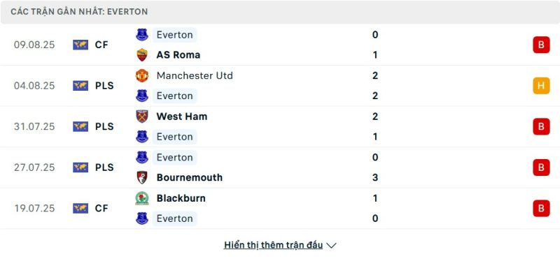 5 trận gần nhất của Everton: L-D-L-L-L