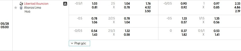 Bảng Tỷ lệ kèo bóng đá Libertad vs Alianza Lima