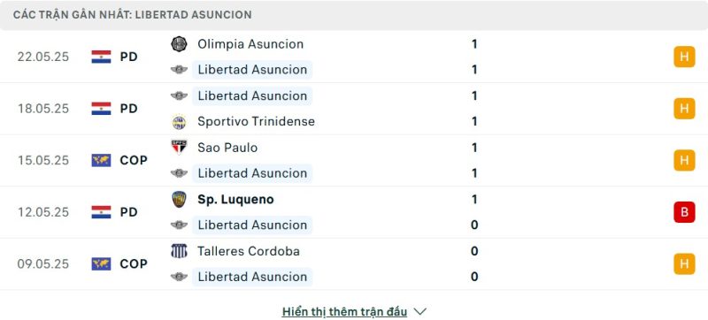 5 trận gần nhất của Libertad: D-D-D-L-D
