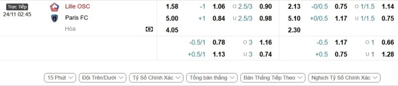 Bảng Tỷ lệ kèo bóng đá Lille vs Paris FC